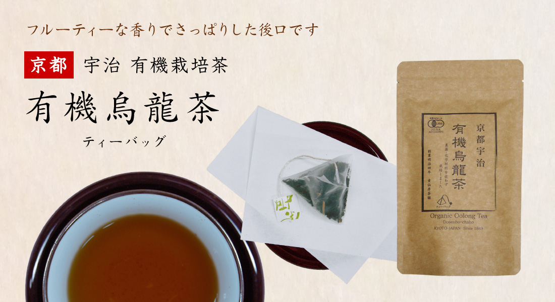 有機無農薬栽培宇治茶 童仙房茶舗の有機烏龍茶TB 2gx12袋入540円(税込) -